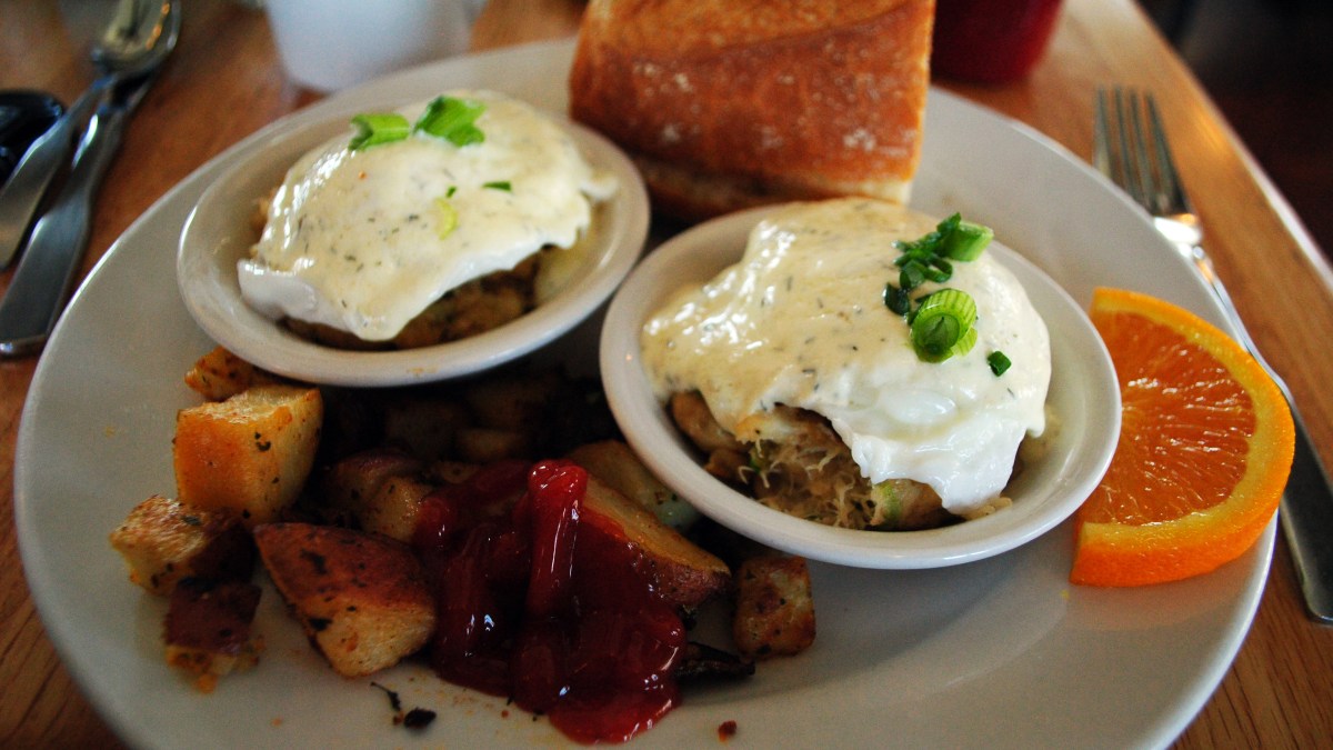 Cape Code benny — made with crab cakes — at the Sea Street Cafe.