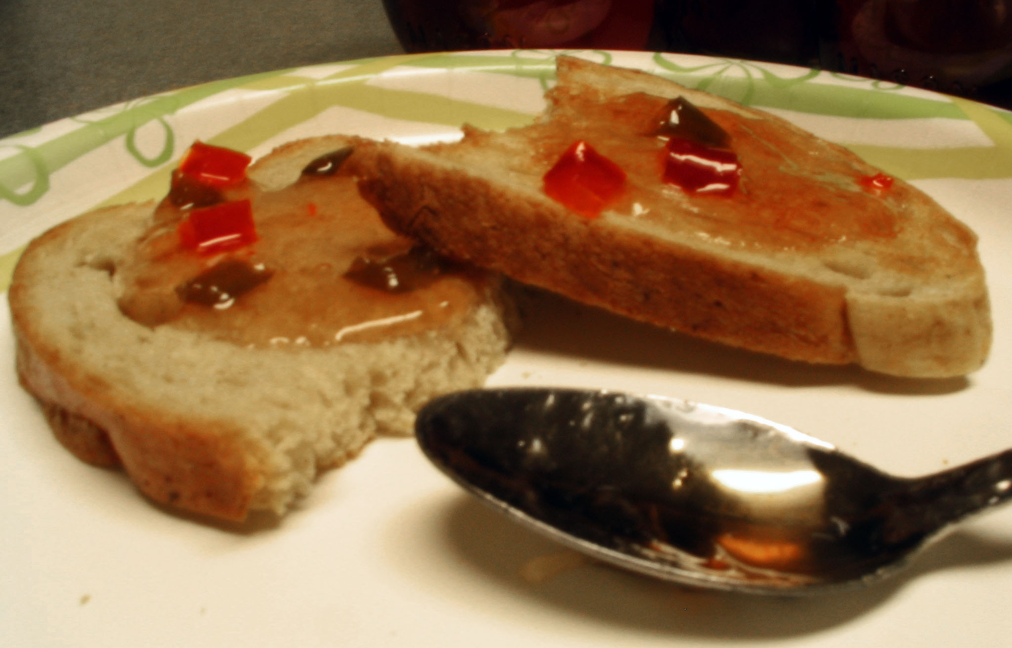 Jalapeno jelly on soda bread. I could never make something so ambitious in my own small kitchen.